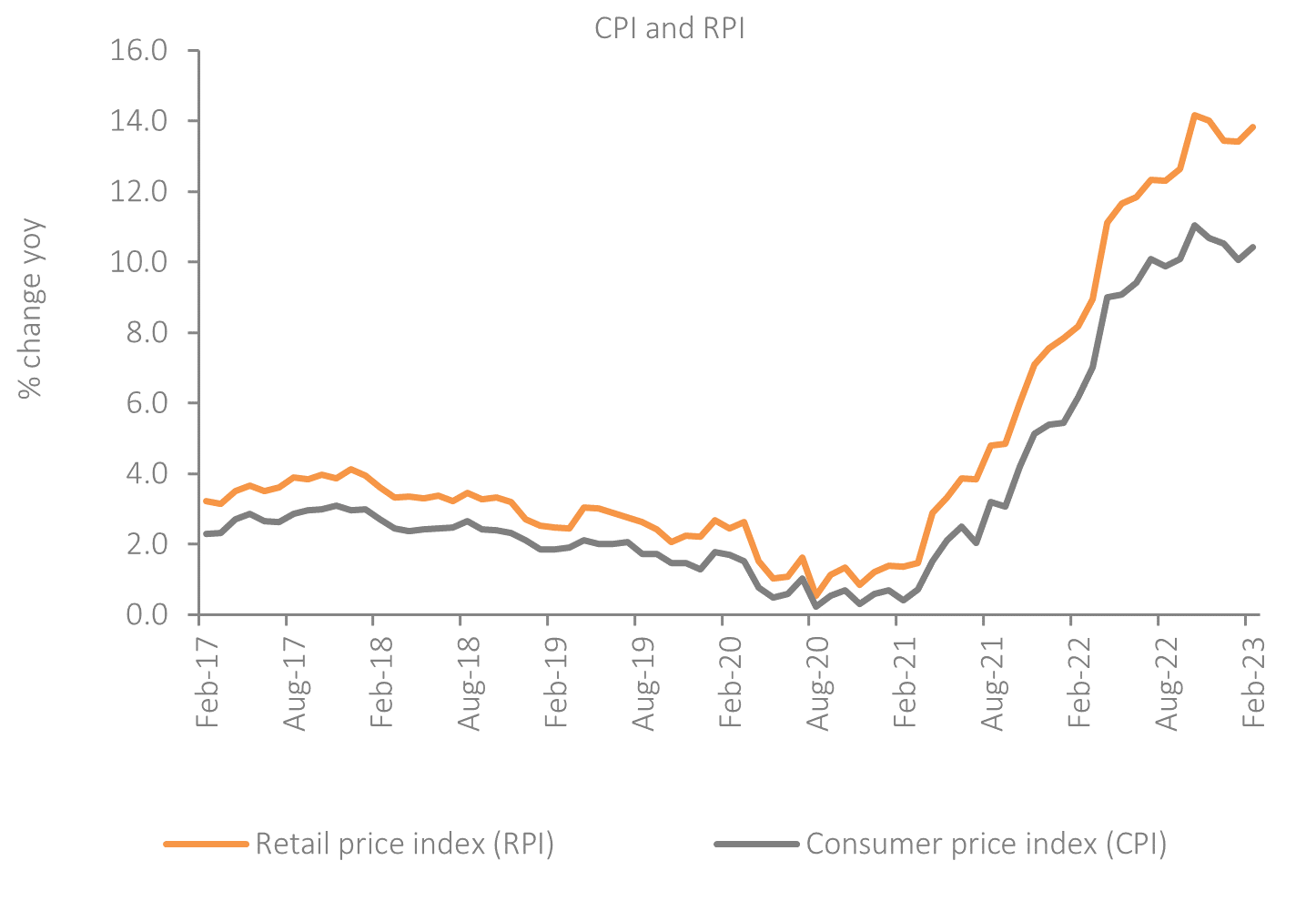 • Retail sales rose by 00% YoY in February according to the Retail Economics Retail Sales Index, against a 00% rise in the previous year.