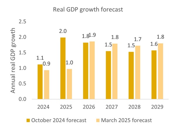 GDP forecast cut down to rise by 1.0% in 2025, down from 2.0% previously