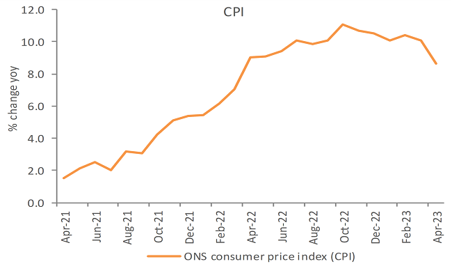 Headline inflation eased to 00% in April, from 00% last month - the lowest level since March 2022. This was above the 00% forecast by economists and Bank of England’s estimate of an 00% rise. On a MoM basis, inflation rose 1.2%.