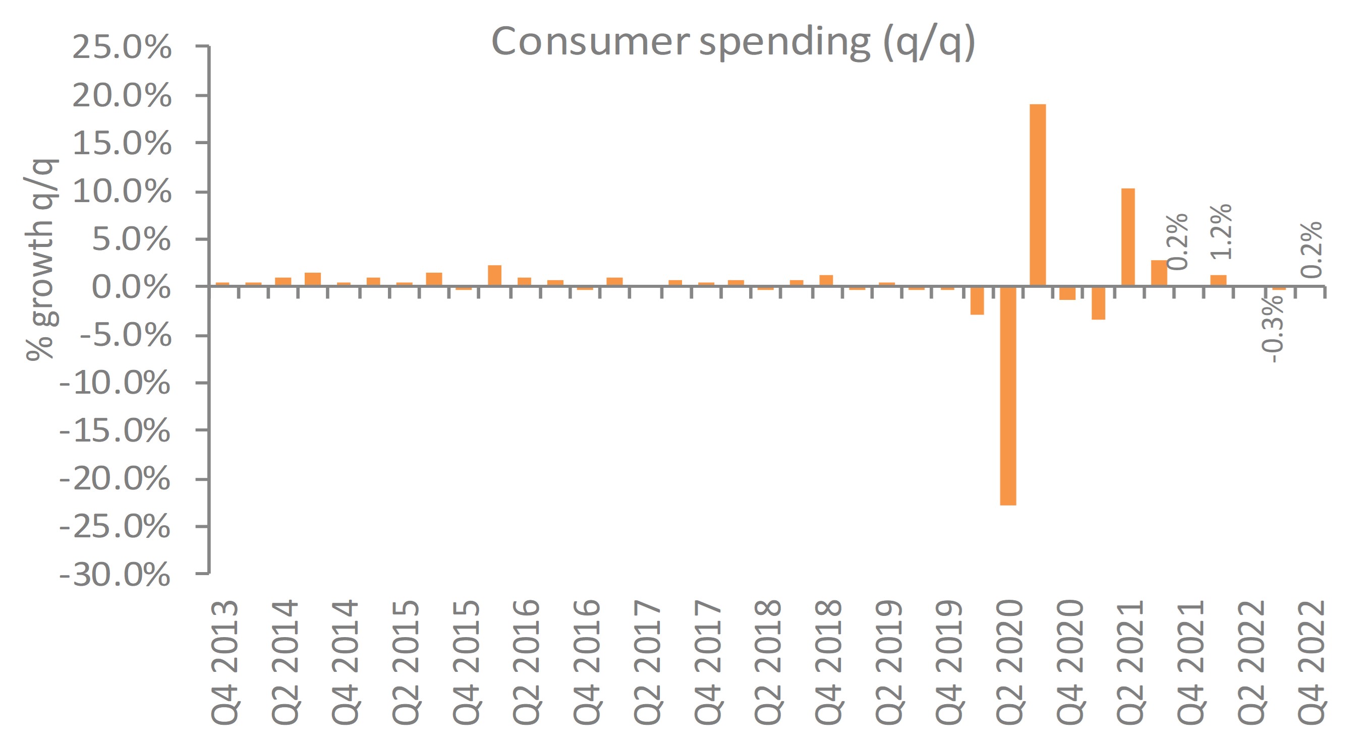 Consumer spending increased by 00% QoQ in Q4 2022.
