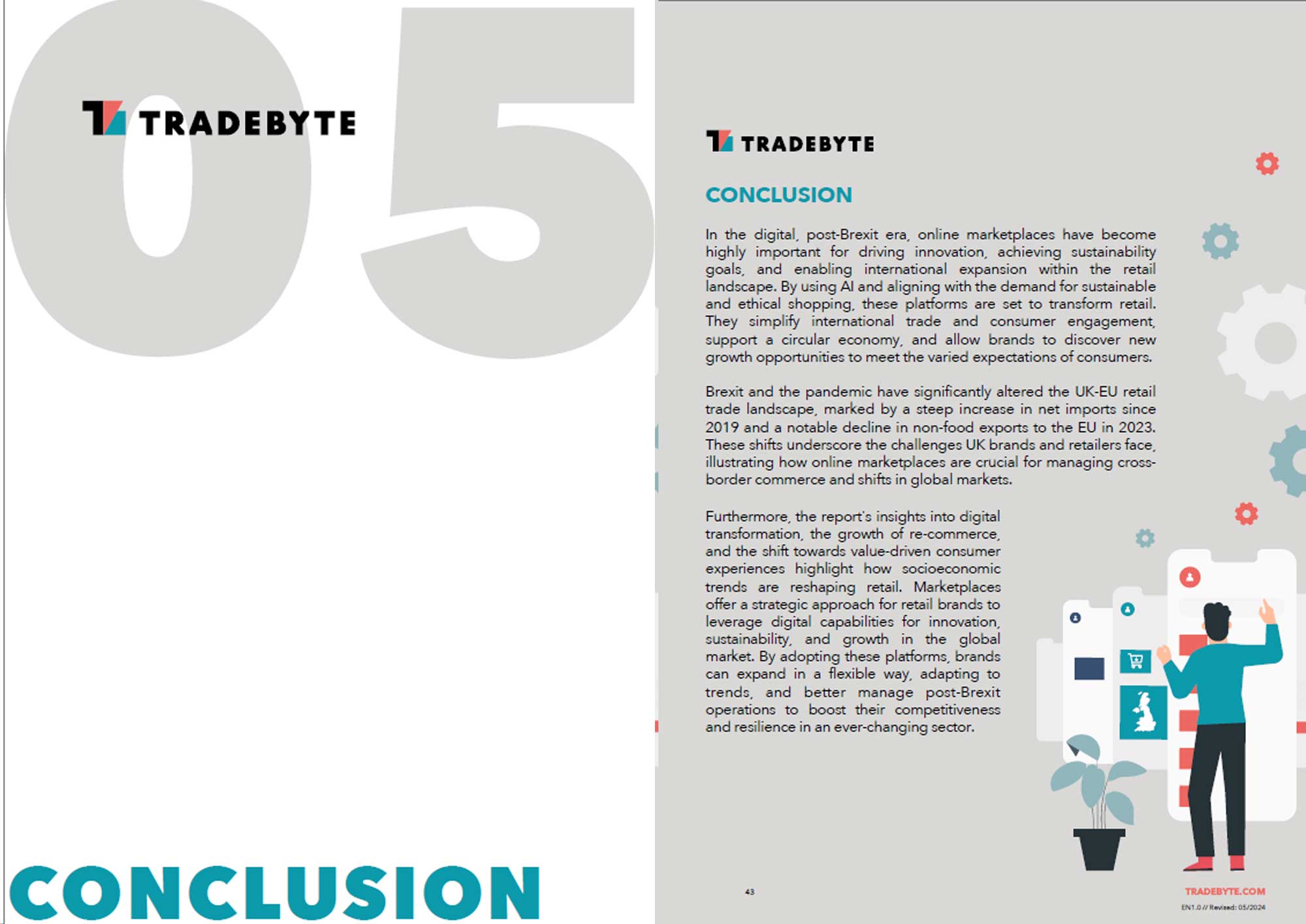 Our report, 'From Brexit to Breakthrough: UK Brands Embrace Marketplaces', developed in partnership with Tradebyte, offers essential insights into UK retail transformations, digital marketplace strategies, and global expansion post-Brexit.