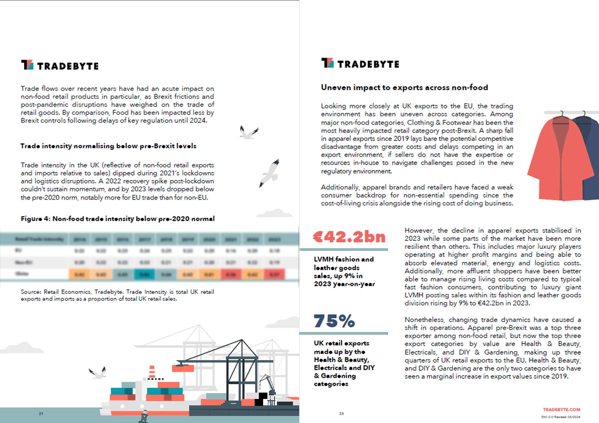 Trade flows over recent years have had an acute impact on non-food retail products in particular, as Brexit frictions and post-pandemic disruptions have weighed on the trade of retail goods. By comparison, Food has been impacted less by Brexit controls following delays of key regulation until 2024.