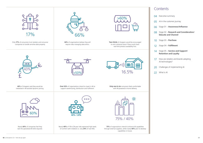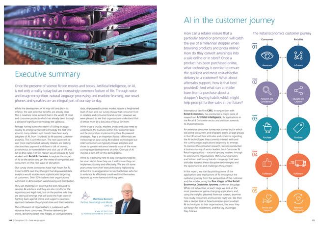 In this report, Retail Economics (and international law firm CMS) start by plotting some of the applications and implications of AI throughout the customer journey from the perspective of the customer and the retailer, using the five stages of the Retail Economics Customer Journey.