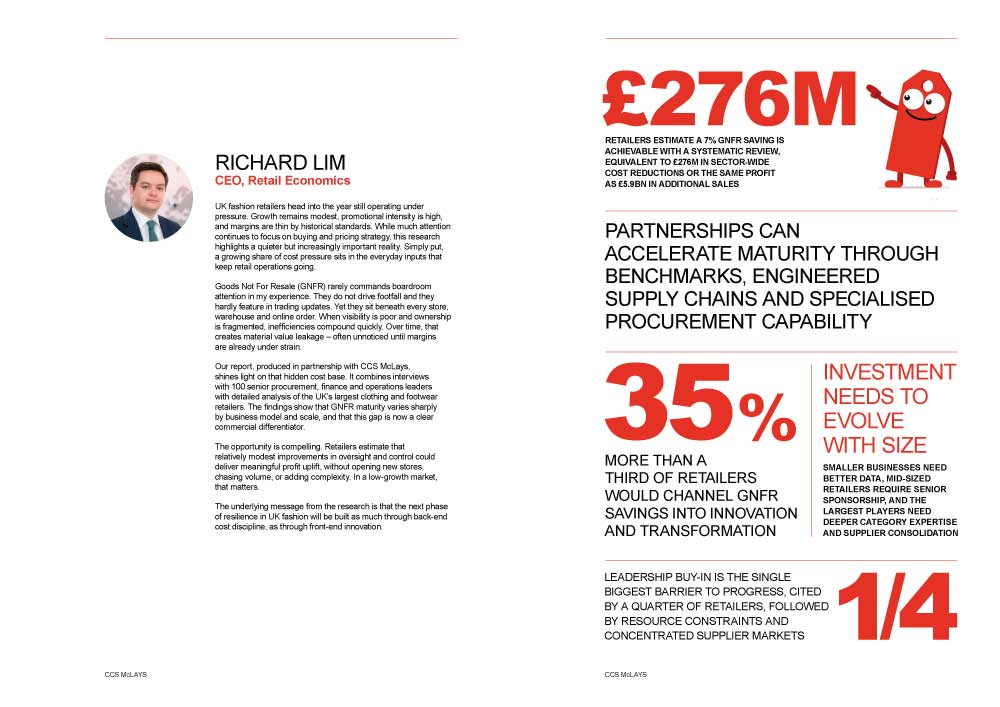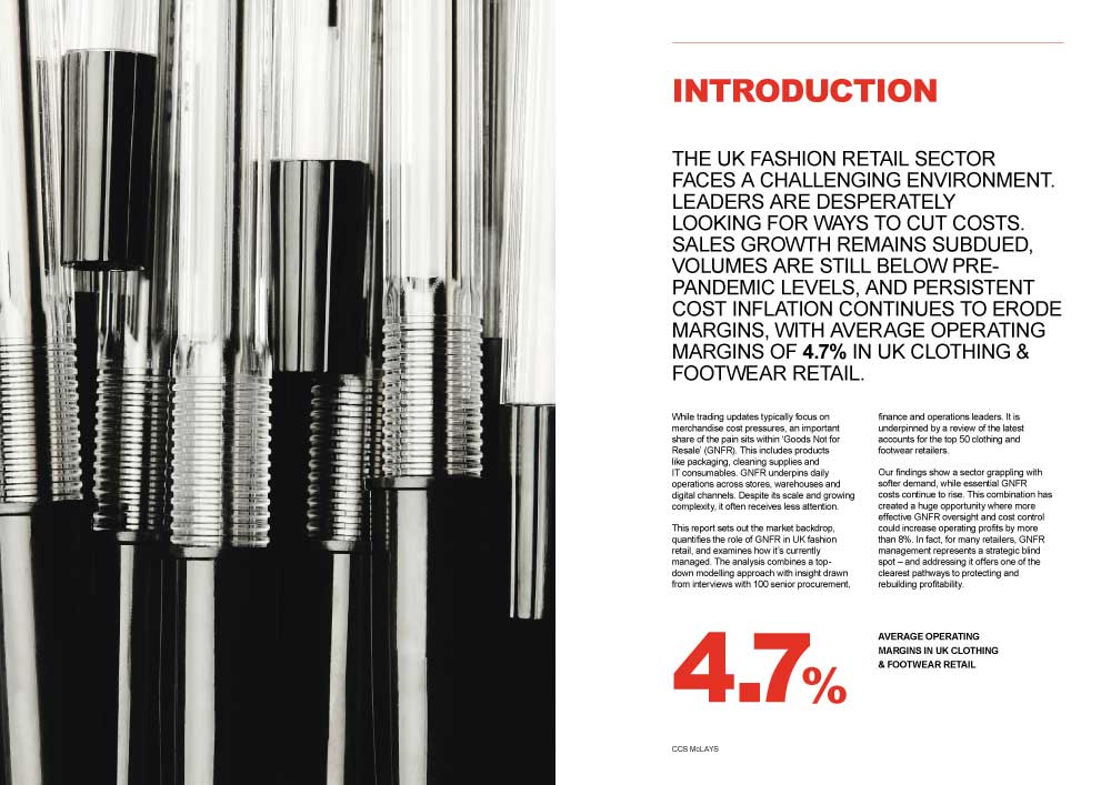 • A systematic 7% reduction in GNFR equates to £276.2m a year for uk fashion retail, equivalent to the profit on an extra £5.9bn of fashion sales (at a 4.7% margin).