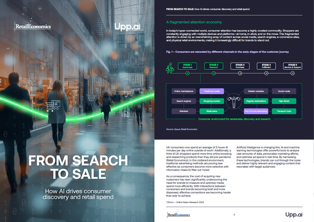 Our From Search to Sale: How AI Drives Consumer Discovery and Retail Spend report is a collaborative publication between Retail Economics and Upp.ai. It explores how AI-powered search technologies are transforming retail discovery and driving consumer spending across digital channels.
