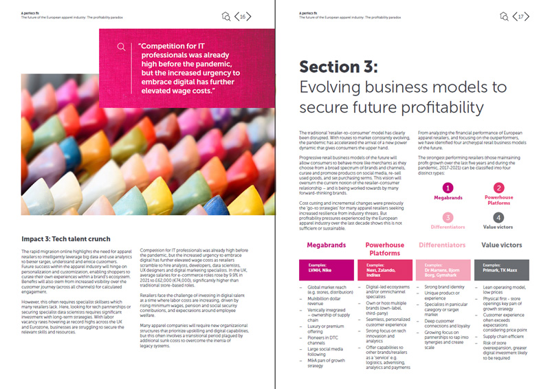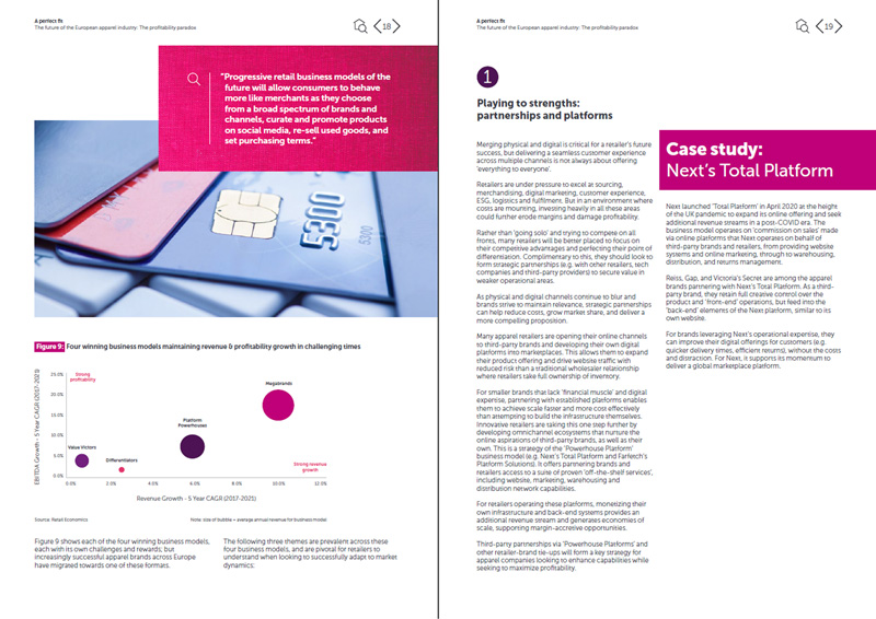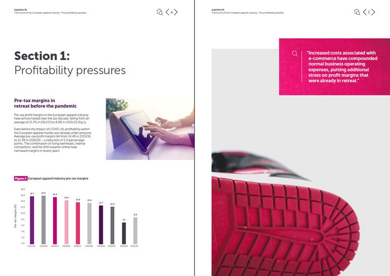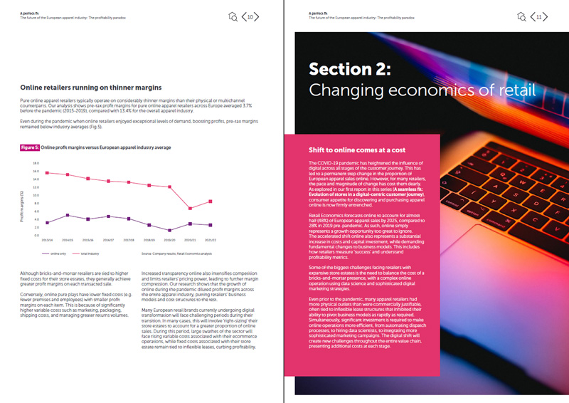The mid-market apparel segment faces the greatest pressure on margins, as it was before the pandemic. This segment is characterized by established legacy brands, typically national rather than international, with a sizeable high street presence, but often lacking scale and online investment.