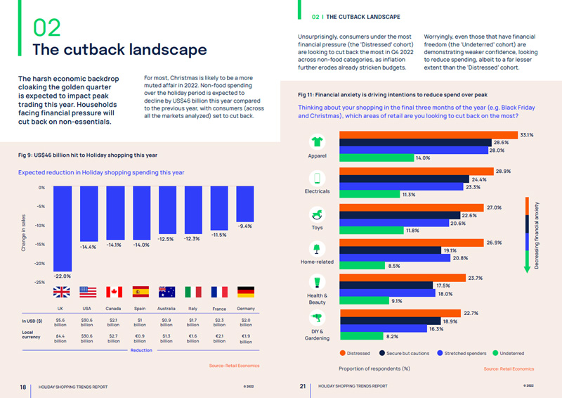 Indeed, the report investigates which categories are likely to suffer most from consumer intentions to cut back spending, and how different consumer types will impact sales performances over peak season. More broadly, it aims to assess retail sales performance across peak trading in the context of intensifying ‘cost of living’ pressures going into the fourth quarter of the year.