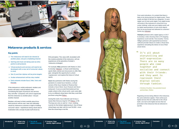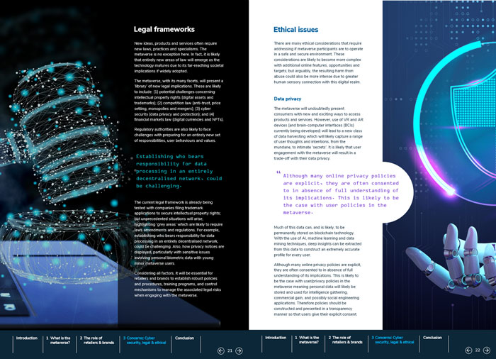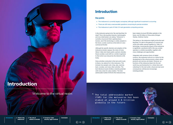 Currently, the metaverse is primarily conceptual, although significant levels of investment are being sunk into its infrastructure, app development and issues concerning intellectual property. This signals firm intent for many organisations to engage with the metaverse more long term and to exploit opportunities afforded by this technology.