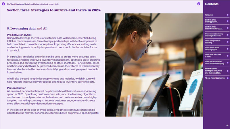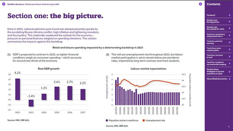 This "Retail & Leisure Outlook Report 2023" is published by Retail Economics in partnership with NatWest. The insight contained is critical for industry professionals operating in the retail and retail related industries for improving strategic planning, forecasts and to navigate the ongoing disruption and wider structural changes with the retail sector. Complete the form at the top of this page now to secure your free copy.