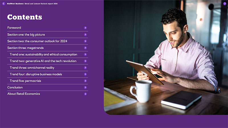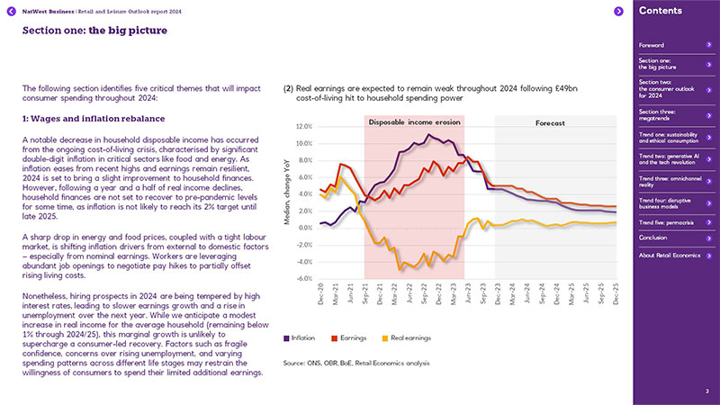 This "Retail & Leisure Outlook Report 2024" is published by Retail Economics in partnership with NatWest.