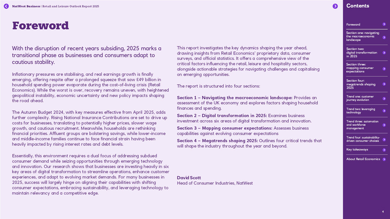 This year's outlook report in partnership with NatWest unpacks the shifting dynamics of household spending, evolving consumer expectations, and the major trends that will redefine the industry. Gain valuable insights to help you navigate uncertainty, capitalise on emerging opportunities, and stay ahead in a challenging market.