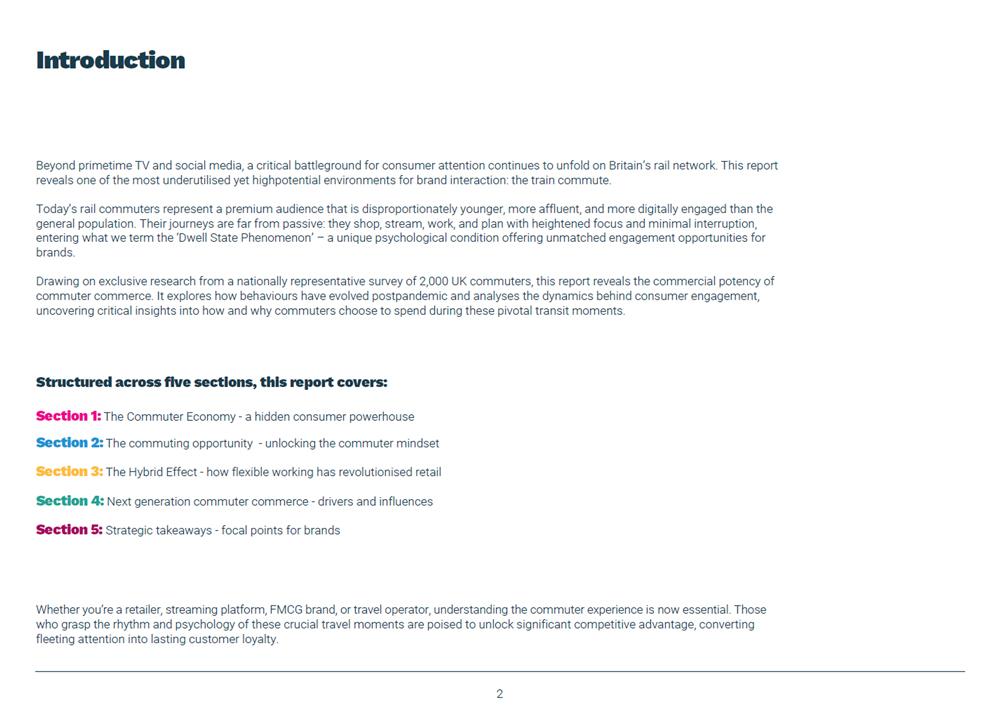 Beyond primetime TV and social media feeds, a critical battleground for attention has quietly emerged on Britain’s rail network. The daily train journey has evolved from dead time into one of the most commercially potent environments for discovery, browsing and buying. This report uncovers how rail commuters constitute a premium audience – younger, more affluent, digitally fluent and highly engaged – whose everyday routines are now tightly interwoven with shopping, streaming and brand interaction.