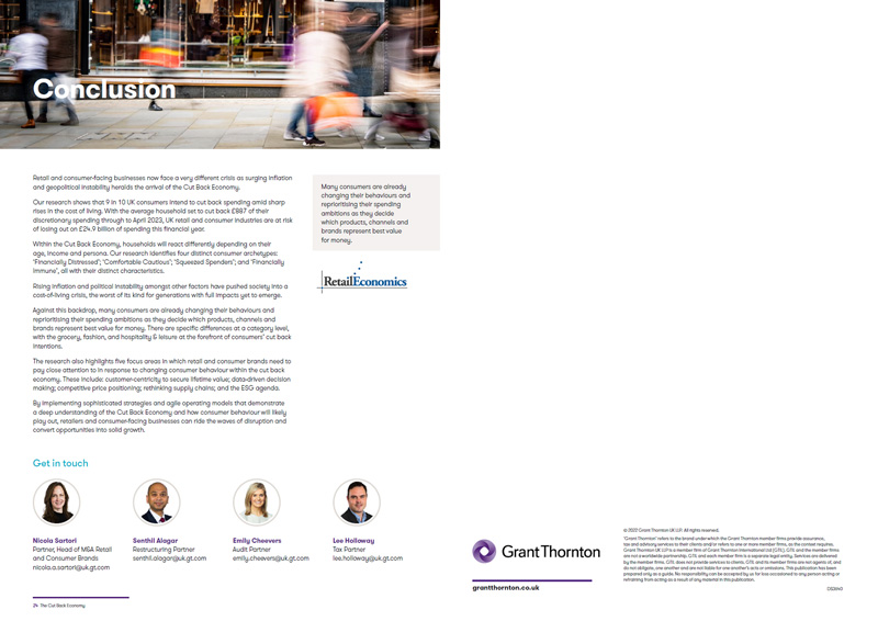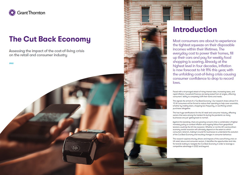 This report produced by Retail Economics in partnership with Grant Thornton looks at the impact of the cost of living crisis on UK retail, leisure and consumer sectors. It identifies the opportunities and risks for brands looking to navigate the Cut Back Economy in order to leverage a competitive advantage in 2022 and beyond.