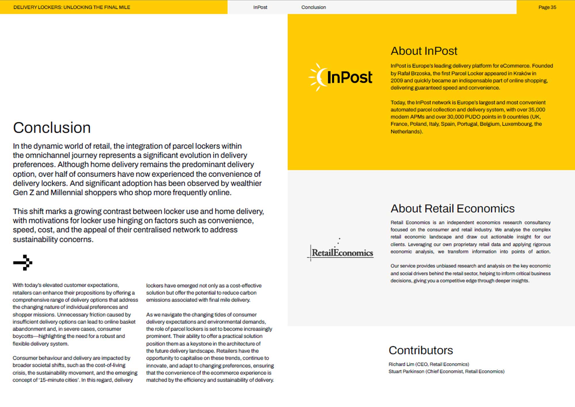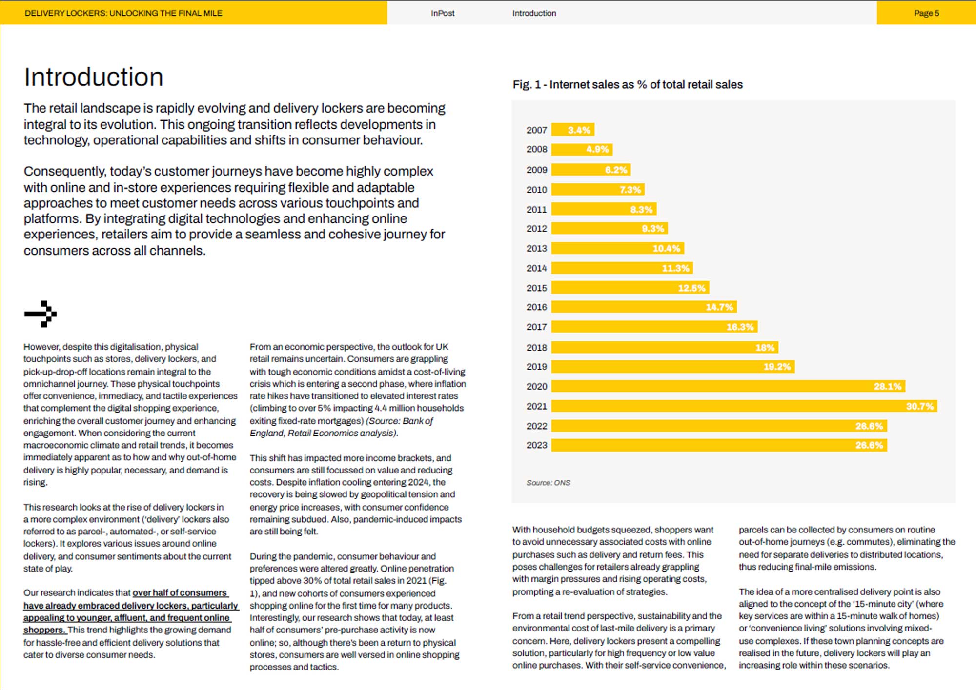 Our report, 'Delivery Lockers - Unlocking the Final Mile',published by Retail Economics in partnership with InPost delivers crucial insights into the evolving use of delivery lockers in the UK retail landscape, consumer delivery preferences, and the integration of sustainable urban logistics. Essential for retailers aiming to refine strategic operations and adapt to ongoing market transformations.