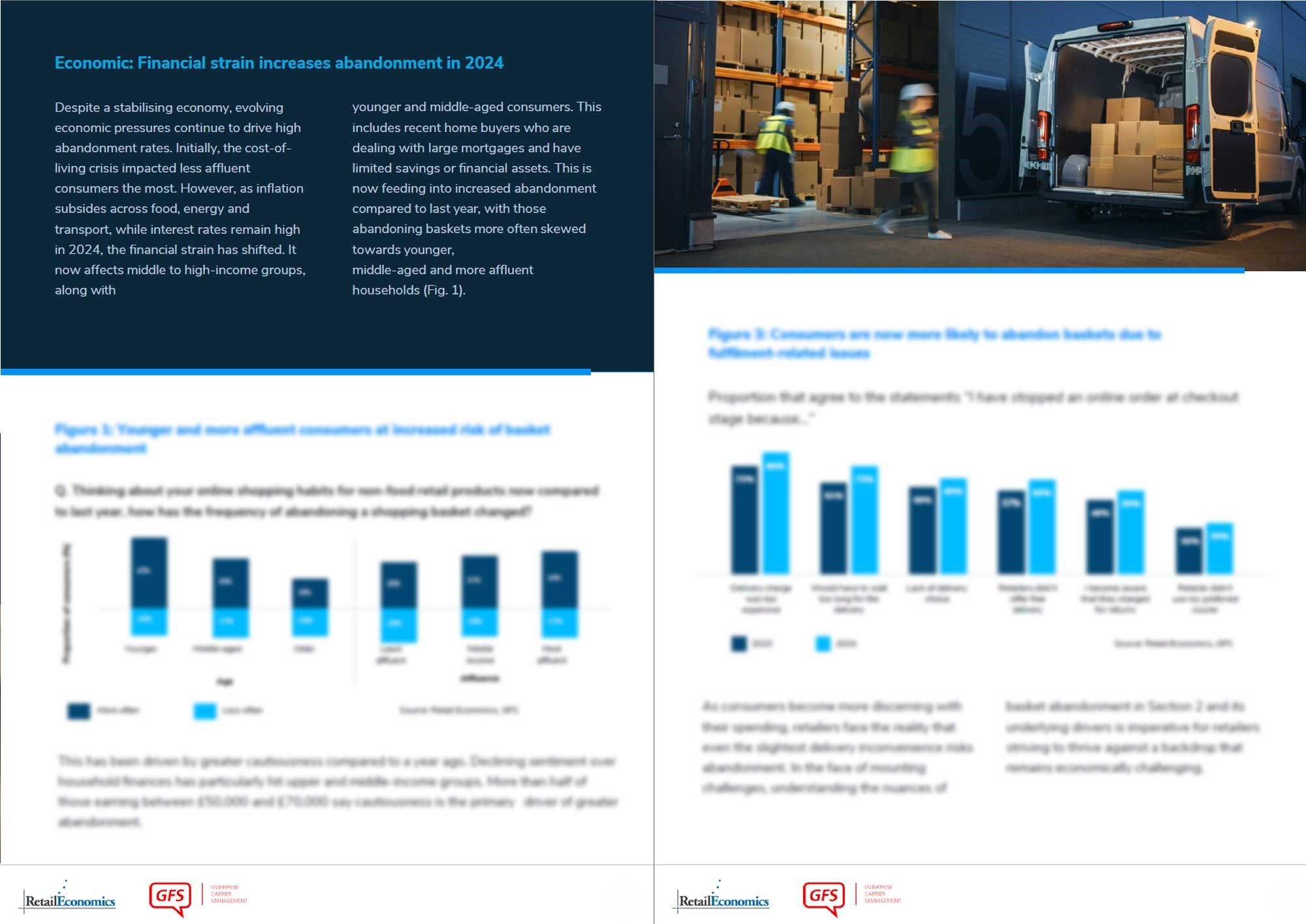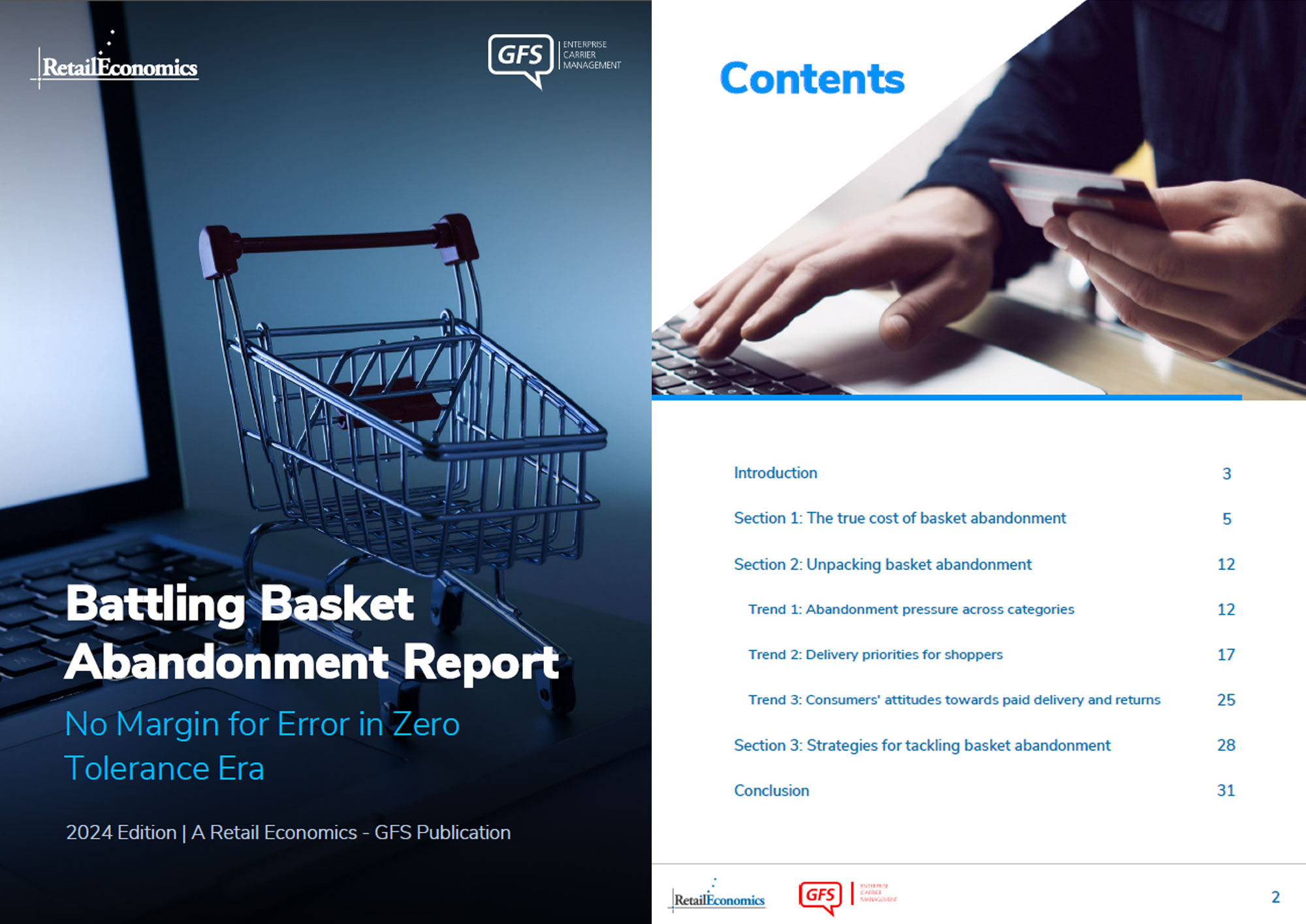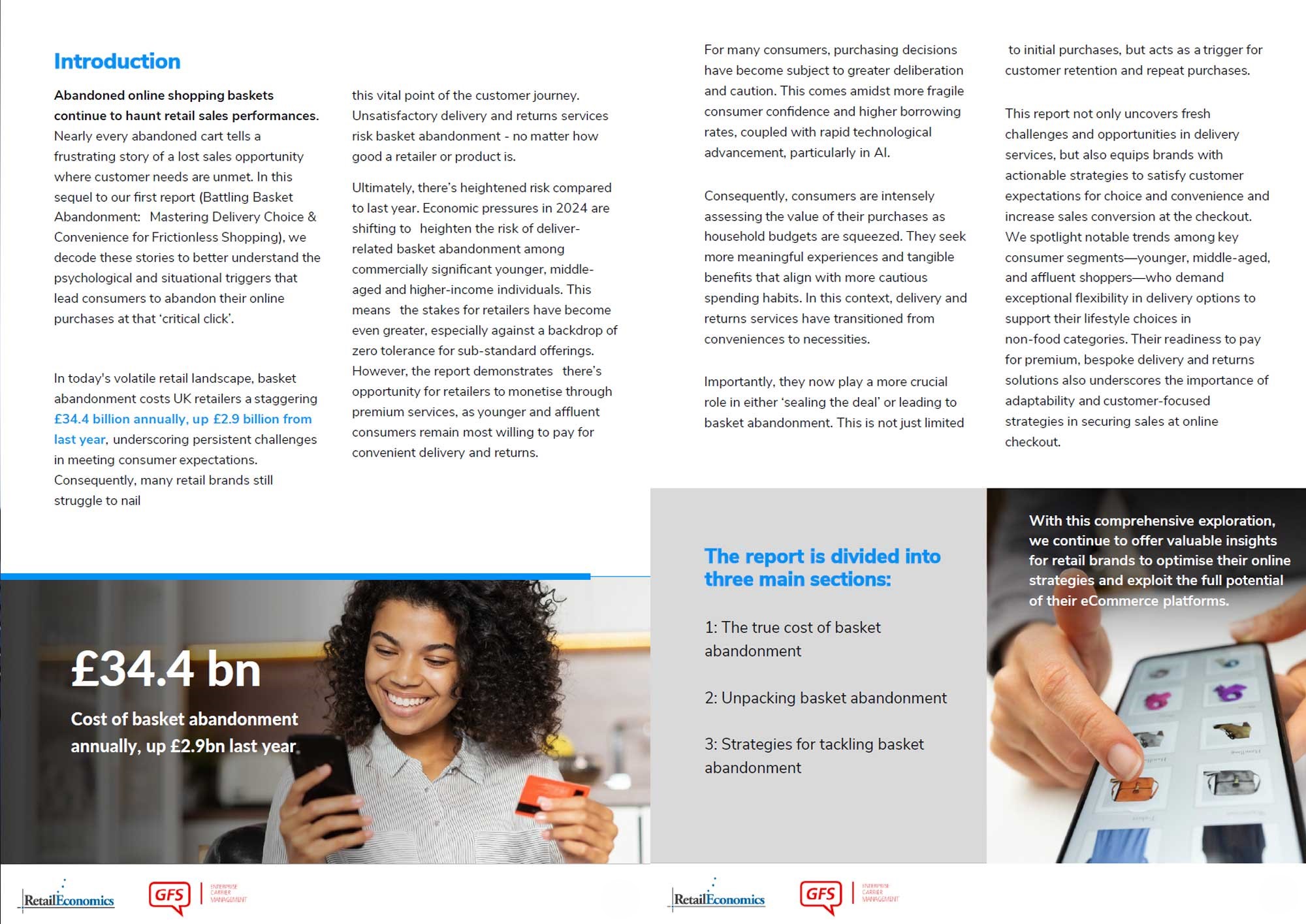 Our report, 'Battling Basket Abandonment 2024', developed in partnership with GFS, delivers crucial insights into the staggering £34.4 billion annual loss UK retailers face due to basket abandonment. It addresses the essential strategies for optimising delivery and returns services to enhance customer satisfaction and retention amidst rising economic pressures and technological advancements.