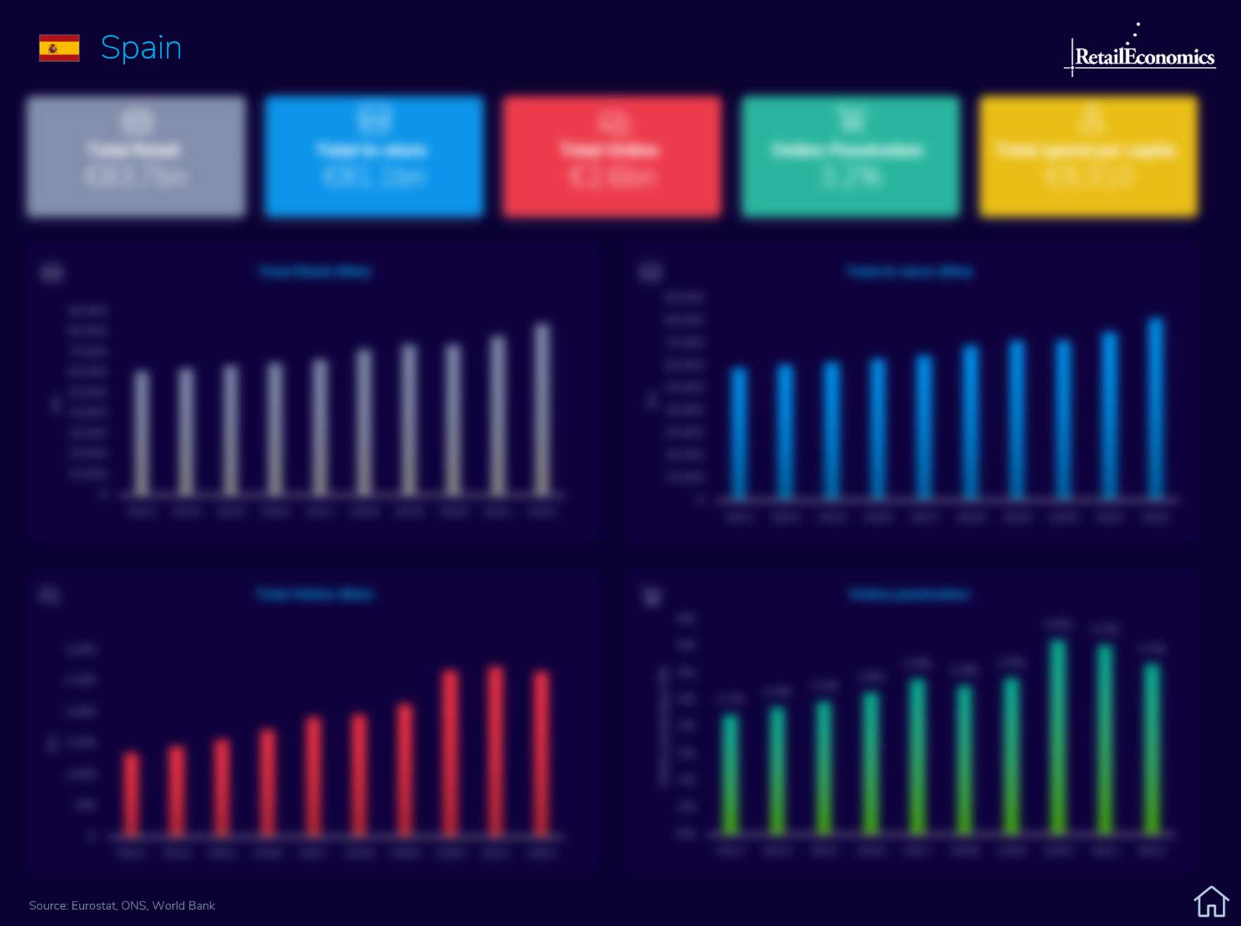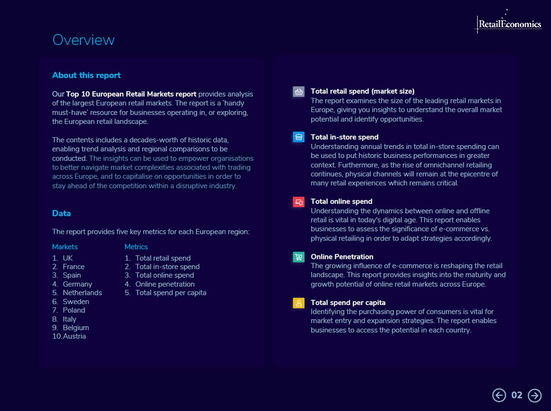 1. Total retail spend - The report examines the size of the leading retail markets in Europe, giving you insights to understand the overall market potential and identify opportunities