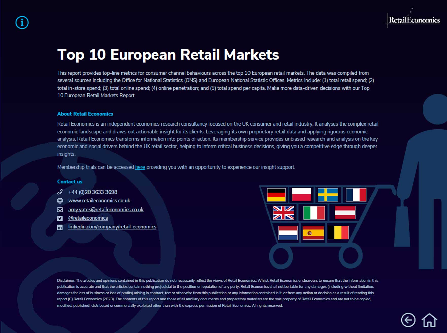• Data and statistics on the top 10 largest European retail markets broken down by five key metrics: