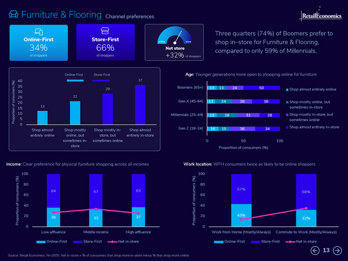 Income: Nearly two thirds (63%) of low-income households shop mostly in-store, while higher-income households have a stronger inclination towards online.