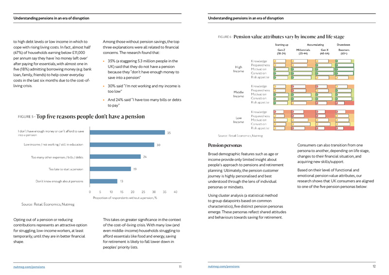 Using cluster analysis (a statistical method to group datapoints based on common characteristics), five distinct pension personas emerge. These personas reflect shared attitudes and behaviours towards saving for retirement.